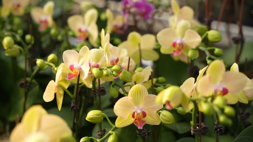 杂交兰则兼具多样优势,花色艳丽、花量丰沛,花期持久且易养护,是年花市场性价比颇高的热门之选。